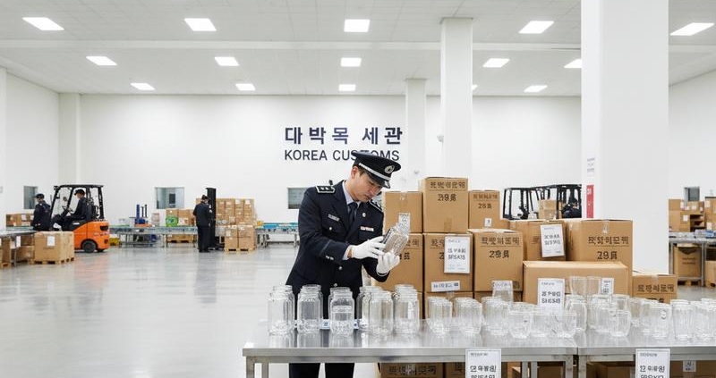 사진1. 1688에서 주문한 유리용기가 한국 세관에서 검사 대기 중인 모습