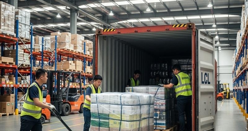 사진1. 중국 창고에서 LCL 화물 적재 작업