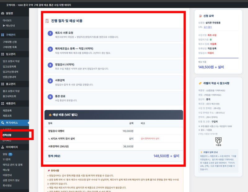 1688 중국배송대행지 굿게이트 추천, 식품기구용기 KFDA 실적관리까지