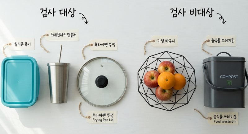 KFDA(식품의약품안전처) 검사는 식품과 직접 접촉하는 용기나 포장재에 대한 안전성 검사예요. 플라스틱 도시락, 스테인리스 컵, 실리콘 조리도구 등이 대상이에요.